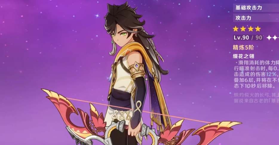 活动赠送的四星弓箭,面板是双攻击力加成的,技能是瞄准射击时每0.5秒提升重击造成的伤害6%,最多叠加6层。