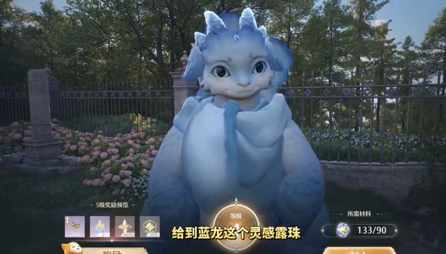 在探索大世界的时候可以收集到灵感露珠,将其给蓝龙可以兑换套装的图纸。