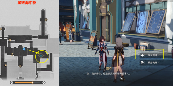 5、举报之后去往星槎海中枢找到雪衣对话,随后仍需要等待明天。