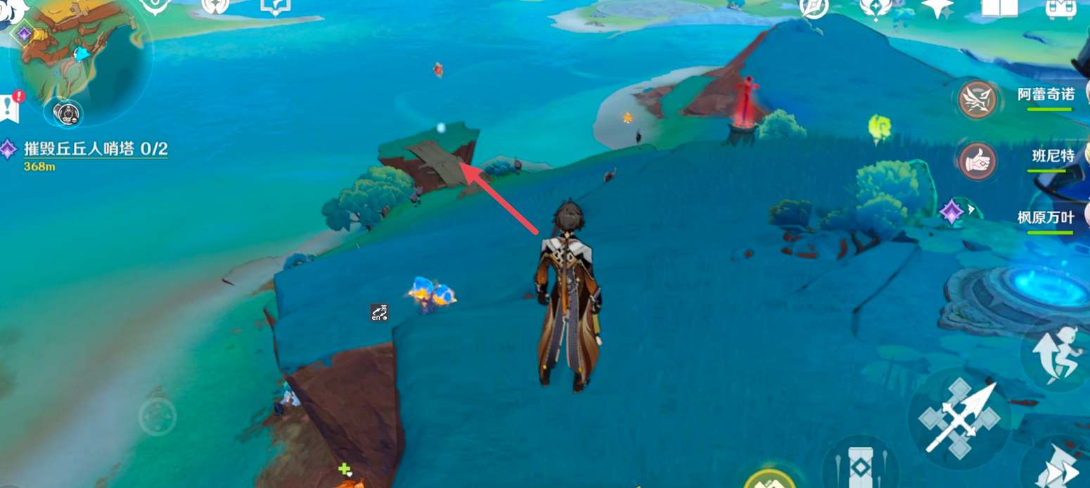 2、传送落地后超面前这个小木桥的方向走。
