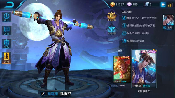 王者荣耀孙悟空的至尊宝皮肤一经推出就深受玩家们的喜爱,可以感受到星爷电影的情怀。下面小编就向大家带来王者荣耀至尊宝图片大全,一起来看下他的局内特效吧。