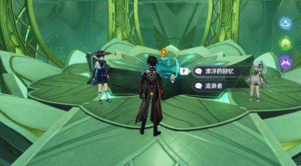 1、首先玩家们需要进入游戏中找到纳西妲,然后进入回忆就能够就开启秘境:漂浮的回忆。