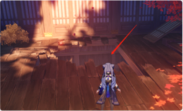 4、接着我们继续往里面前进,靠近绿色树叶的位置就会回到起点,我们可以使用绿色树叶传送进去,在愚人众房间左边的屏障后面就能找到最后的宝箱了。