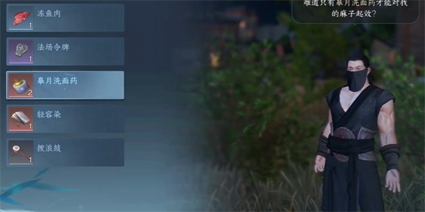 2、从中得知他想治好脸上的麻子,此时玩家需将其出示洗面药;