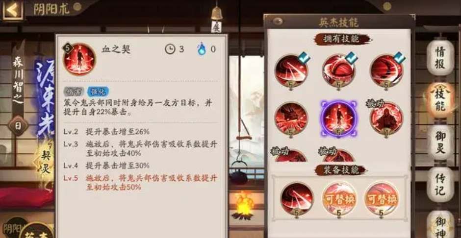 血之契:附身给另一个友方目标提高暴击,鬼兵部伤害吸收系数提升到初始攻击力50%