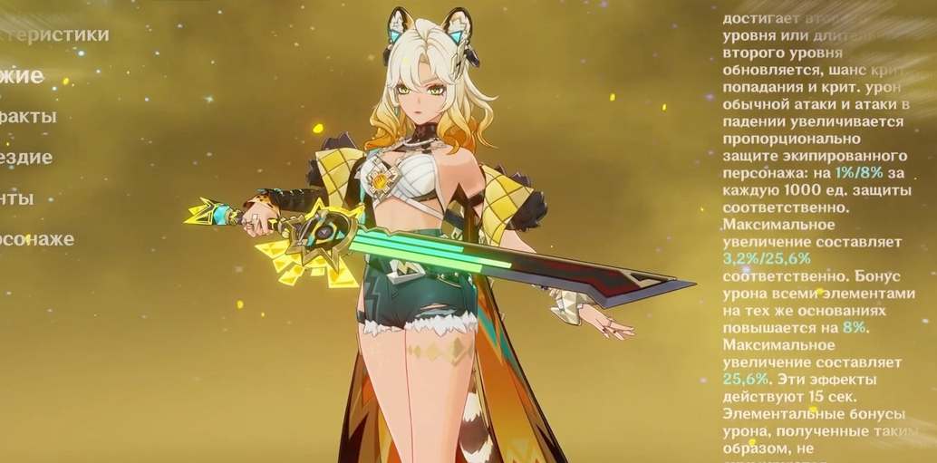 4、4命:产生充盈光环持续期间,基于希诺宁自己的防御力的200%,提高队伍角色的普通攻击与重击造成的伤害。