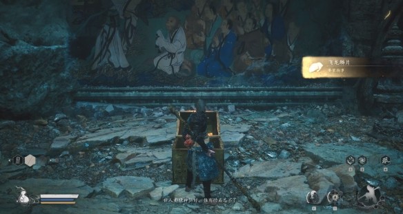 5、进入壁画山洞中就可以找到一个金灿灿的宝箱。