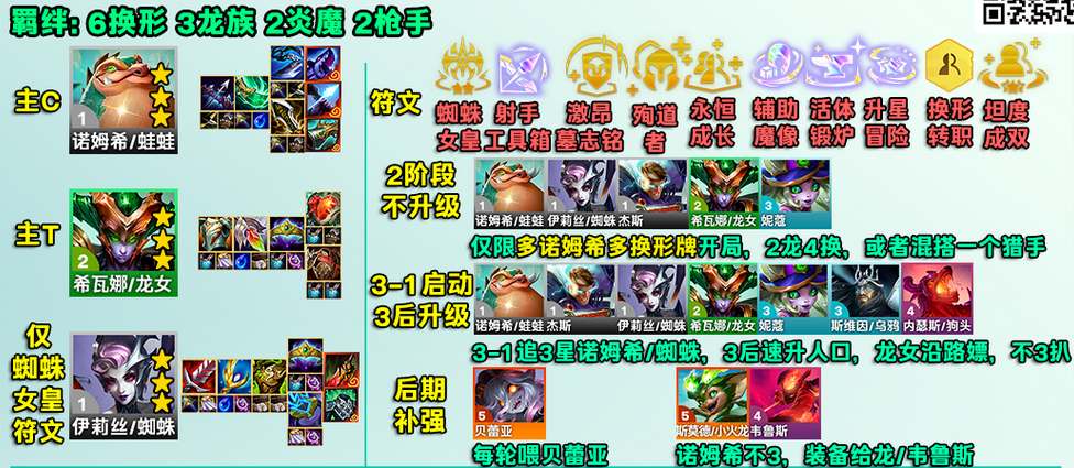 云顶之弈s12蜘蛛女皇阵容怎么玩?蜘蛛女皇是一个特殊的强化海克斯,拿到后可以玩换形师和龙族羁绊组合。下面为大家整理了蜘蛛女皇阵容的构成以及玩法运营思路,想要了解的小伙伴可以参考以下的图文攻略。