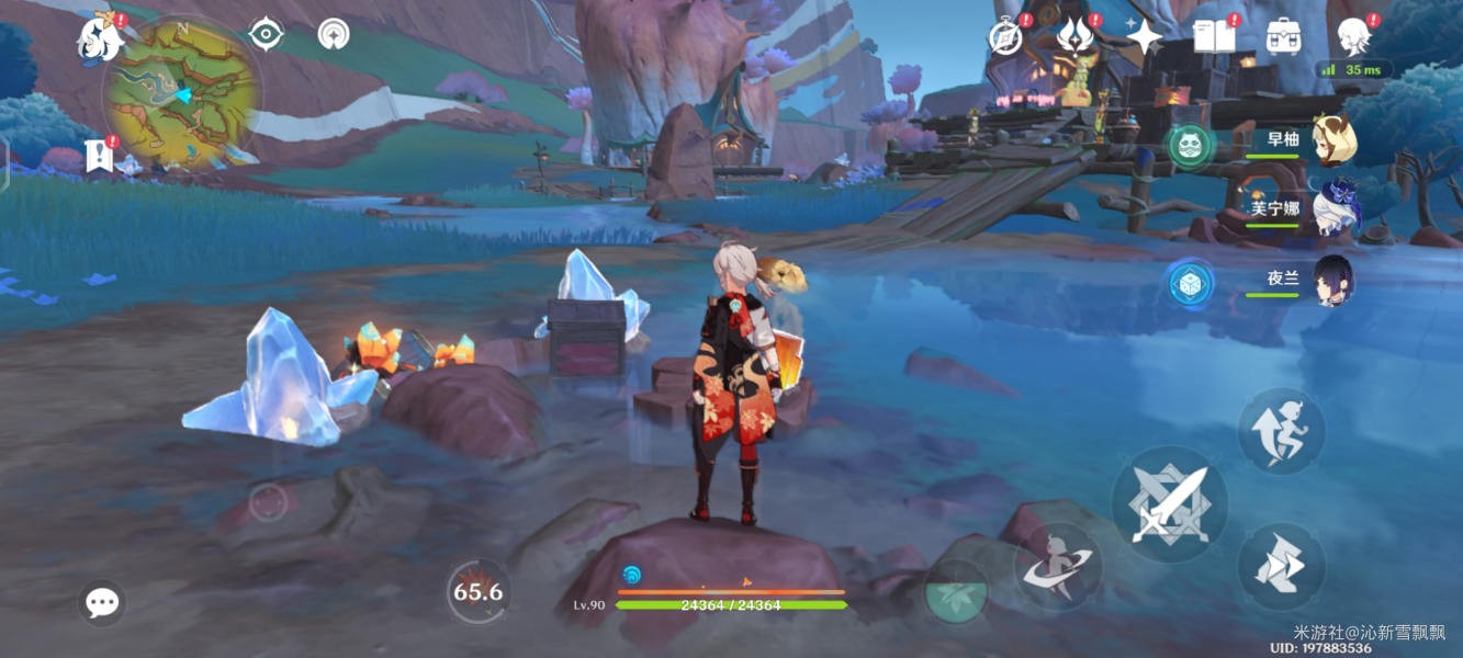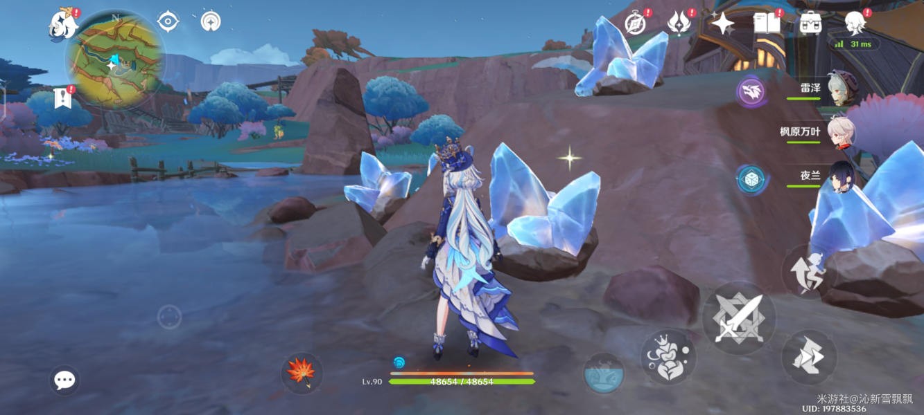 来到大石块前,首先用卡奇娜轰击一侧隐藏点,让灵光回去