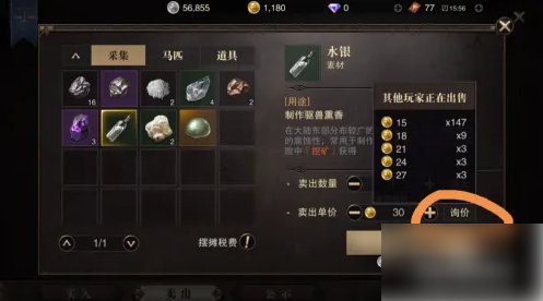 我们随便选择一个进行演示,,点击这里的“询价”,就可以知道这件物品在别人那里卖多少了,然后我们也输入差不多的金币即可