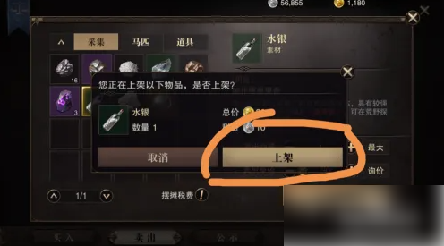确认无误后点击上架该物品,弹出图中对话框,点击确定
