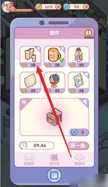2. 在逸家家具的摆件界面,点击上面的摆件。