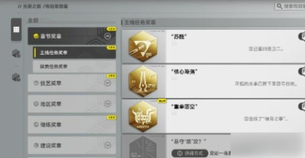 荣誉墙展示:蚀刻章可在“光荣之路”界面自由排列,打造专属荣誉墙,支持按类型、难度、获取时间分类展示。