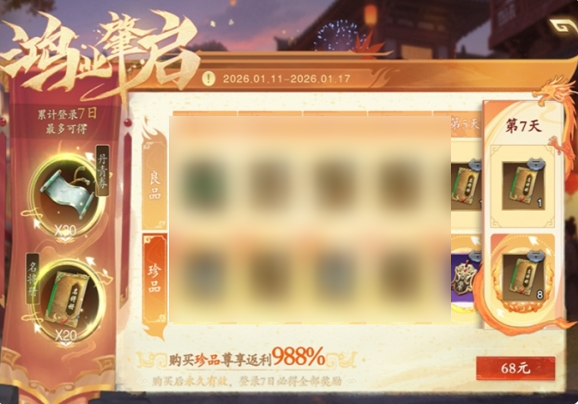 鸿业肇启是最近刚开的活动,每天可领取名将册(后续也会周期性开类似的)。如果有预算可以氪68元,可以得到5个名将册、30个丹青。