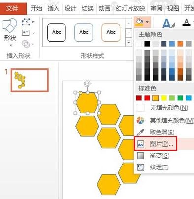 选中其中一个六边形,单击填充按钮,选择图片。