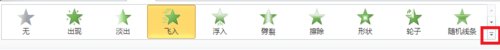 点击菜单栏中的动画,选择“飞入”动画效果,此时点击右边的效果选项,会出现很多供选择的飞入方向,但若这些方向都无法满足我们的需要呢,此时便需要自定义了